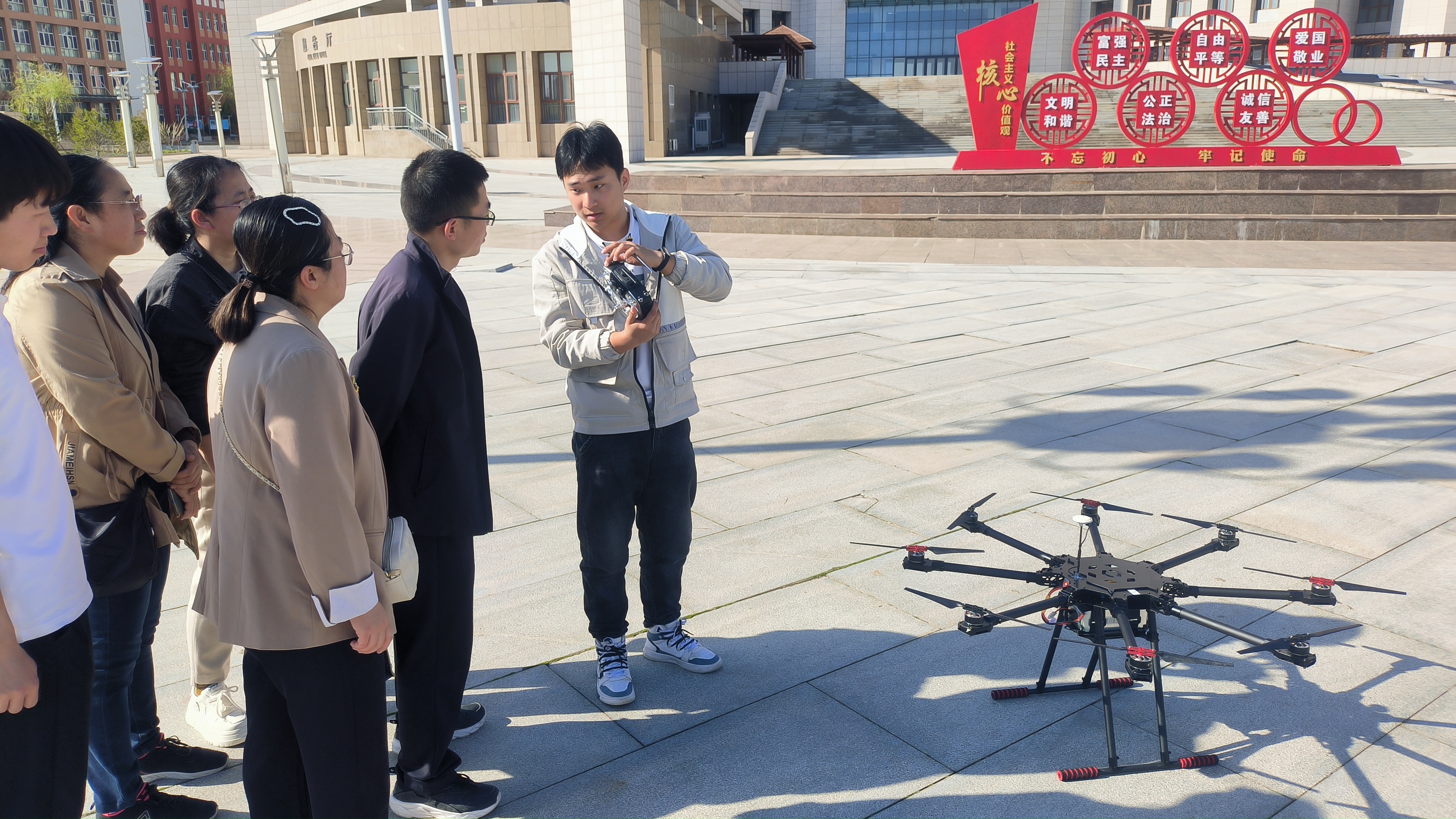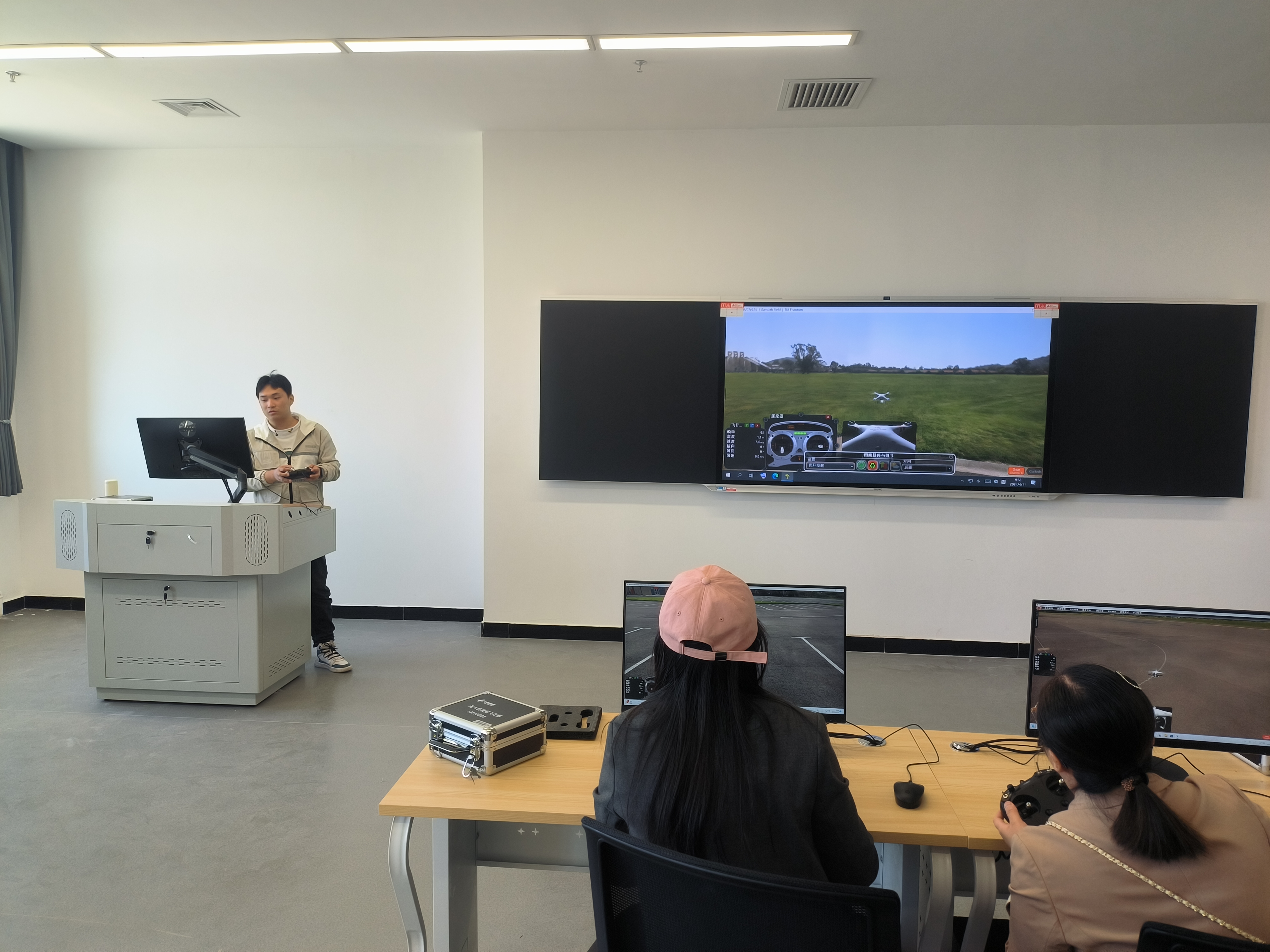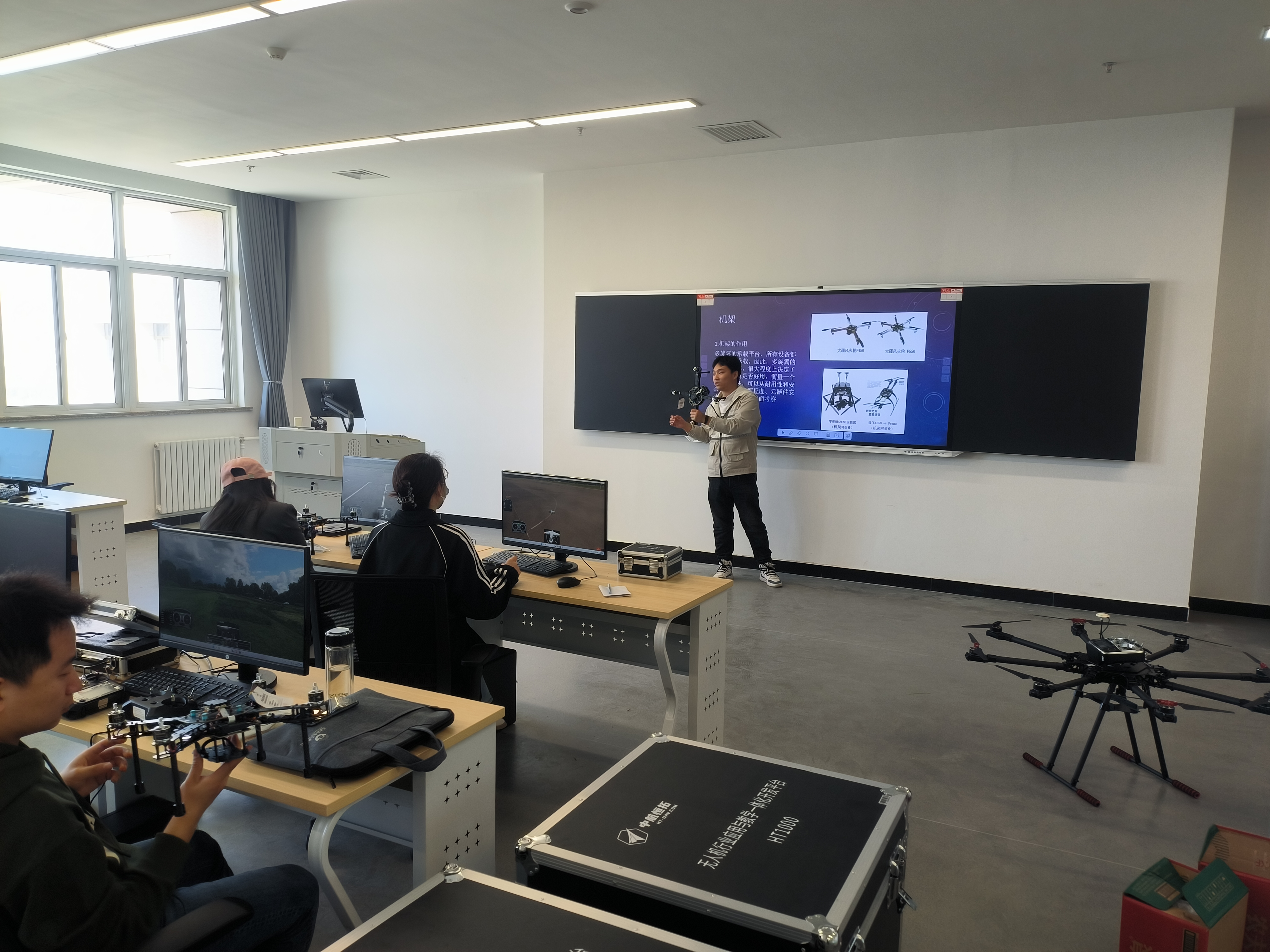中航恒拓工程師于榆林職業(yè)技術(shù)學院對無人機飛行模擬器進行講解。