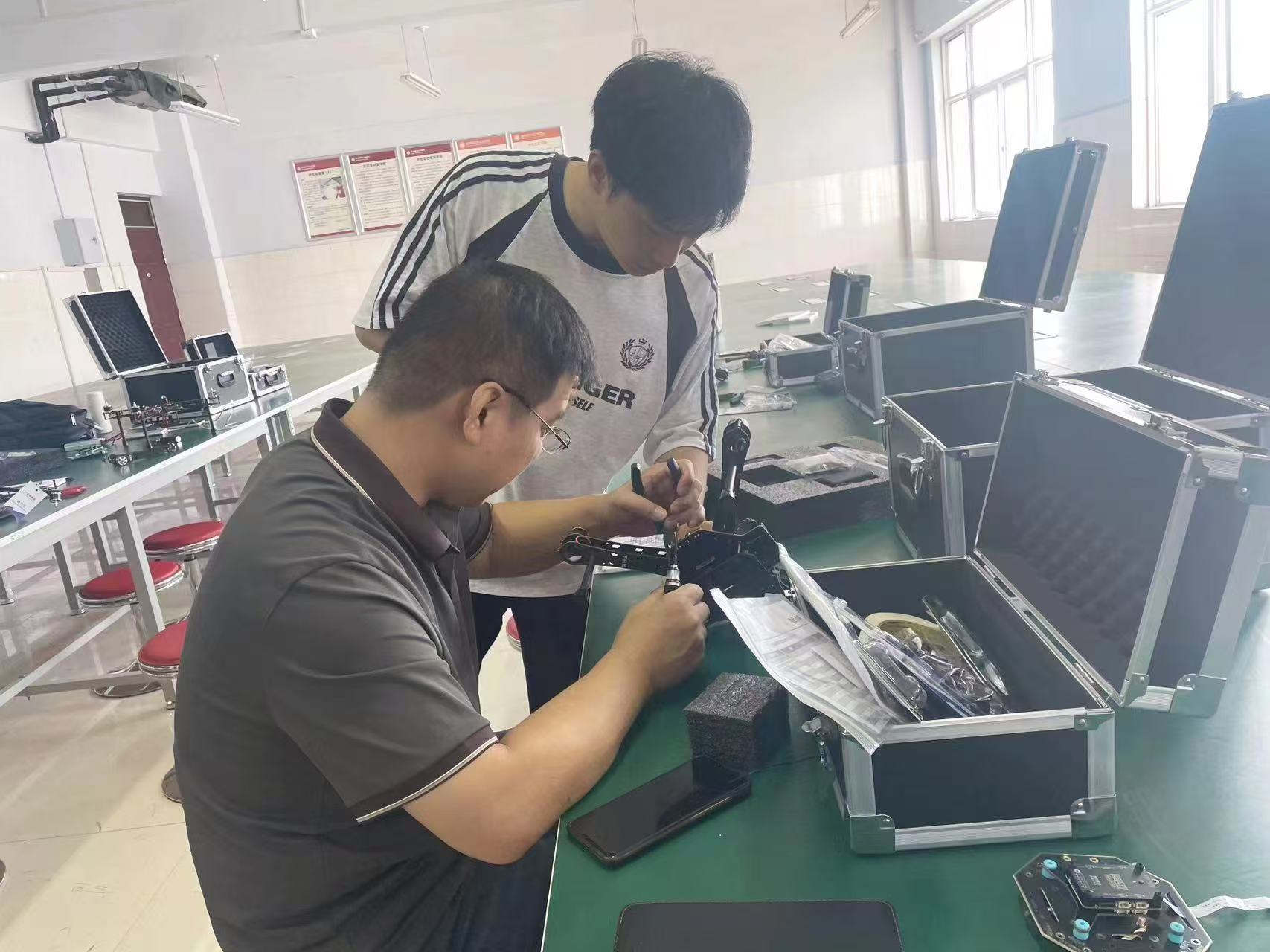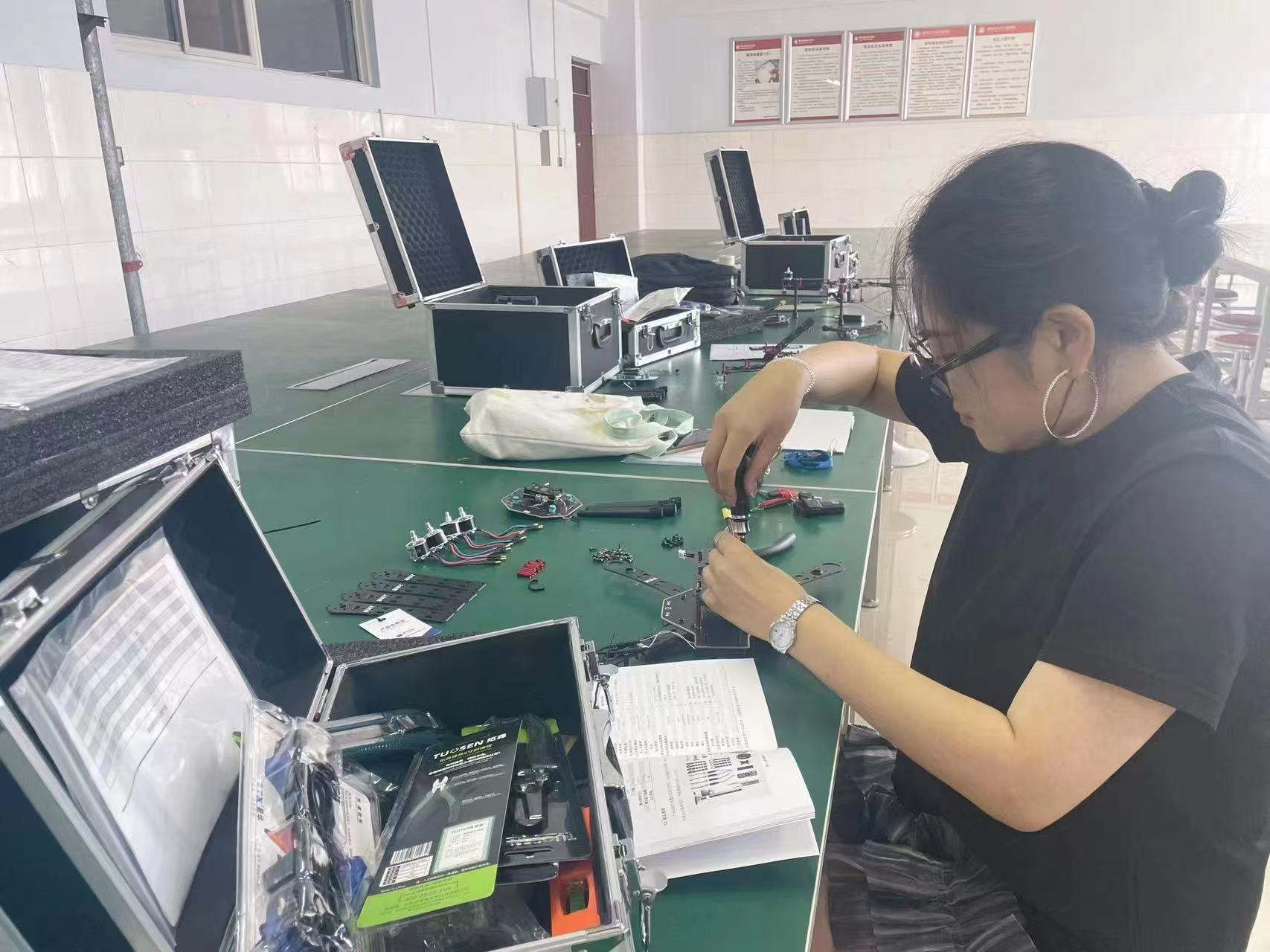 學(xué)校無人機(jī)專業(yè)教師在練習(xí)無人機(jī)組裝