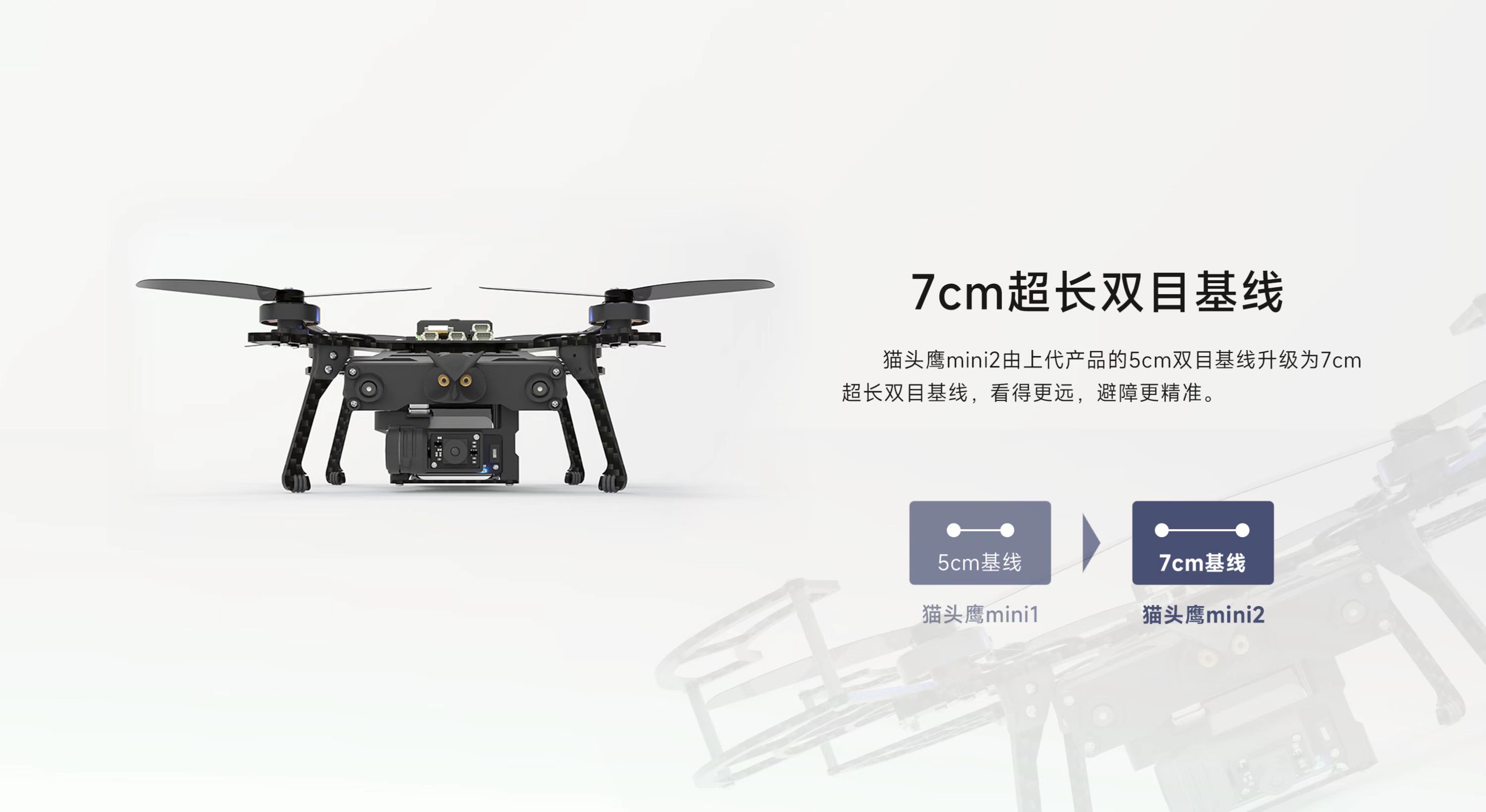 AI視覺無人機(jī)蜂群開發(fā)平臺(tái)貓頭鷹mini 2,為教育/科研而升級(jí)。軸距200mm,整備質(zhì)量617g,續(xù)航28min,視覺定位飛行速度達(dá)20m/s,自主避障飛行速度達(dá)2m/s。自主研發(fā)雙目視覺,搭載國產(chǎn)機(jī)載計(jì)算機(jī),算法升級(jí),更穩(wěn),更準(zhǔn),更快,更智能;搭載8核處理芯片和6 TOPS NPU,具備強(qiáng)大的學(xué)習(xí)與計(jì)算能力,為用戶帶來更多開發(fā)體驗(yàn);搭載微型增穩(wěn)云臺(tái),適配YoLo V7目標(biāo)檢測算法,可輕松實(shí)現(xiàn)目標(biāo)定點(diǎn)跟蹤;云臺(tái)攝像支持機(jī)載高清高畫質(zhì)編碼錄制,同步支持低延遲視頻圖像傳傳輸功能;新增無人機(jī)模擬仿真器VISIM,適用無人機(jī)單機(jī)控制、路徑規(guī)劃、集群、蜂群等算法仿真驗(yàn)證,可以極大提升貓頭鷹無人機(jī)功能研發(fā)、測試的效率和安全性。