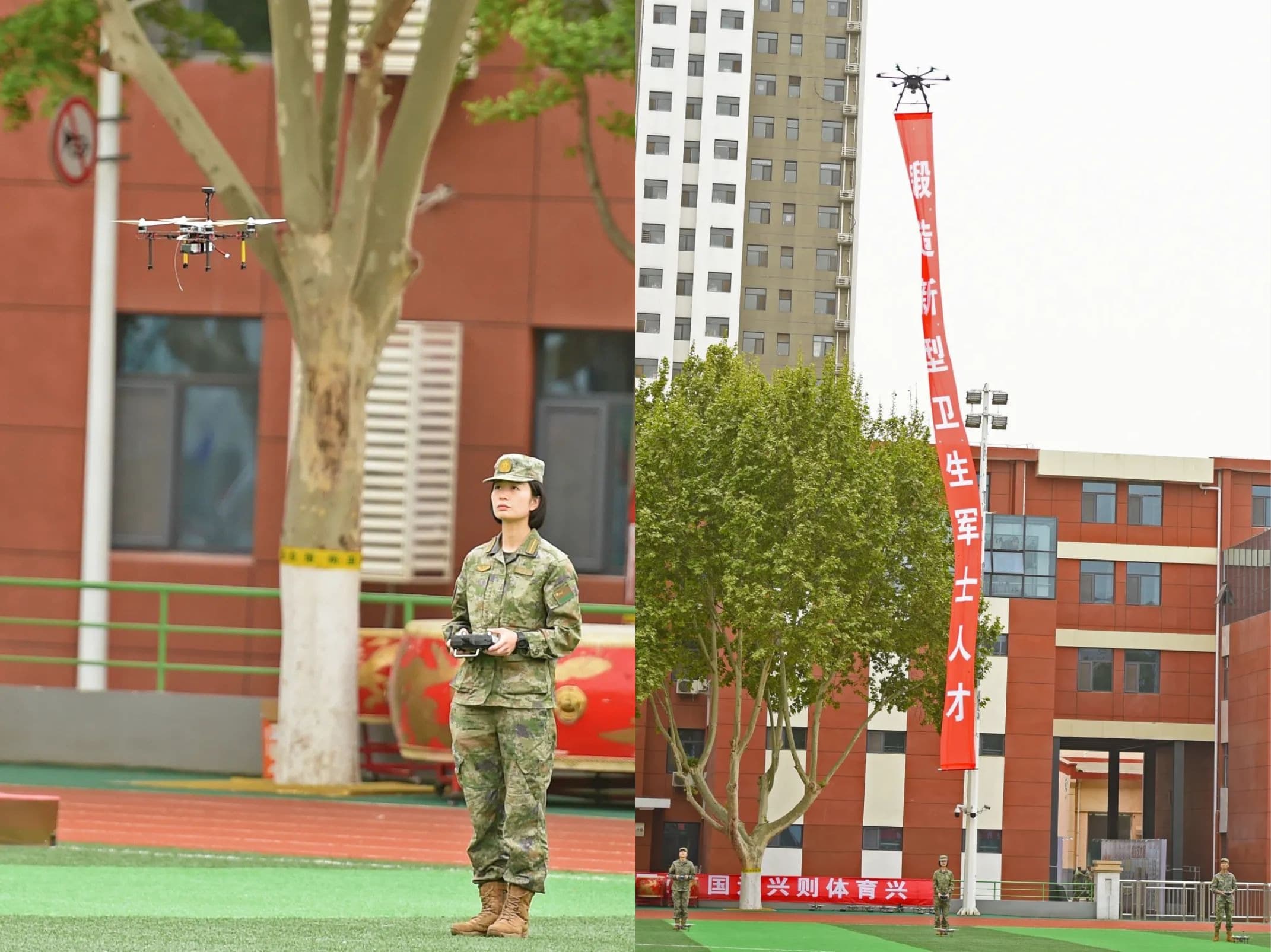 無人機操控展示行云流水,展現(xiàn)了學校推進實戰(zhàn)化,教學改革不斷探索智能化、信息化衛(wèi)勤保障升級的訓練成果。
