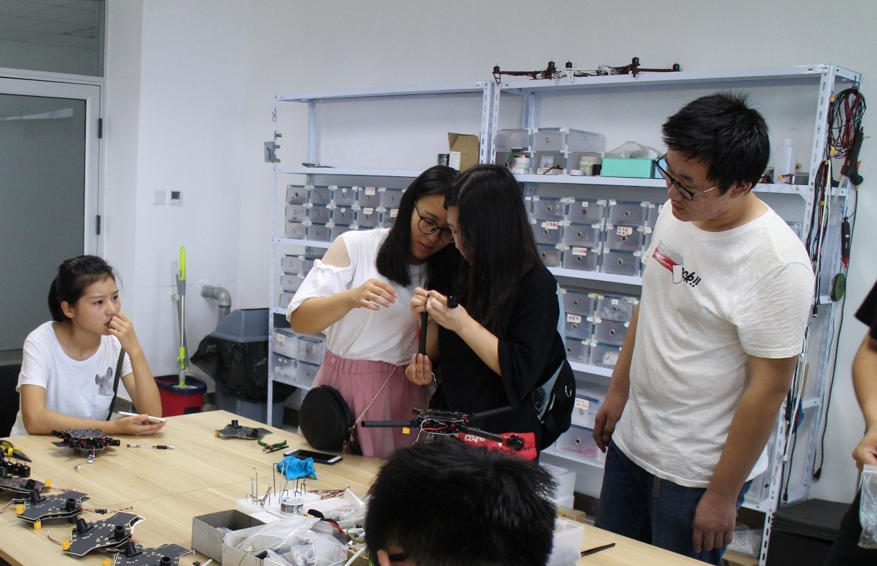 工程師帶領(lǐng)學(xué)生認(rèn)識無人機(jī)構(gòu)造