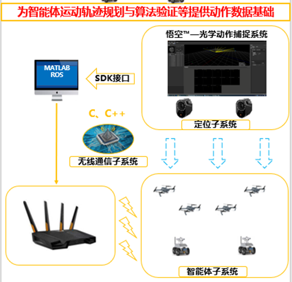 在對無人機(jī)、無人車等智能體進(jìn)行高精度編隊(duì)時,工程師需要構(gòu)建一個空間測量基準(zhǔn),該基準(zhǔn)可以實(shí)時精確測量每個智能體在空間中的位置和姿態(tài),并通過運(yùn)行有控制軟件(如ROS)的計算機(jī)下達(dá)編隊(duì)指令。