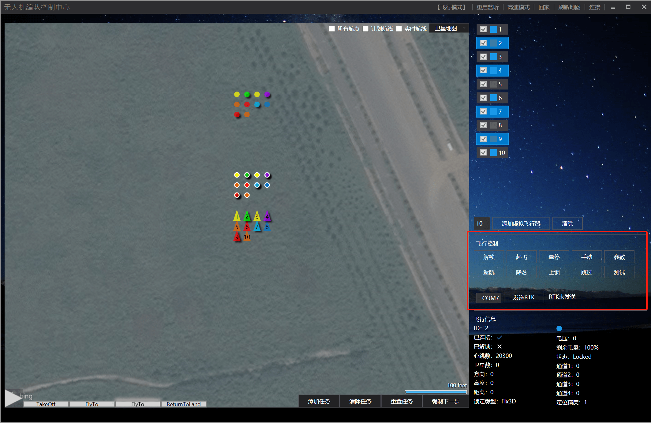 選中多架飛機(jī):鼠標(biāo)點擊飛行器列表中的ID可以選中某一個飛機(jī),同時按住shift或control可以同時選中多架飛機(jī);
